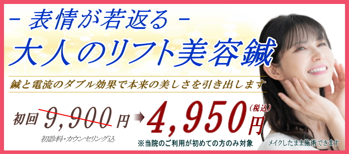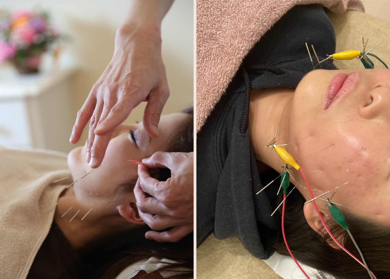 「表情が若返る 大人のリフト美容鍼」は、表情筋の走行や神経の働きを考慮しながら、必要なポイントに鍼を行い、微弱な電気刺激で筋肉をやさしく動かす施術です。